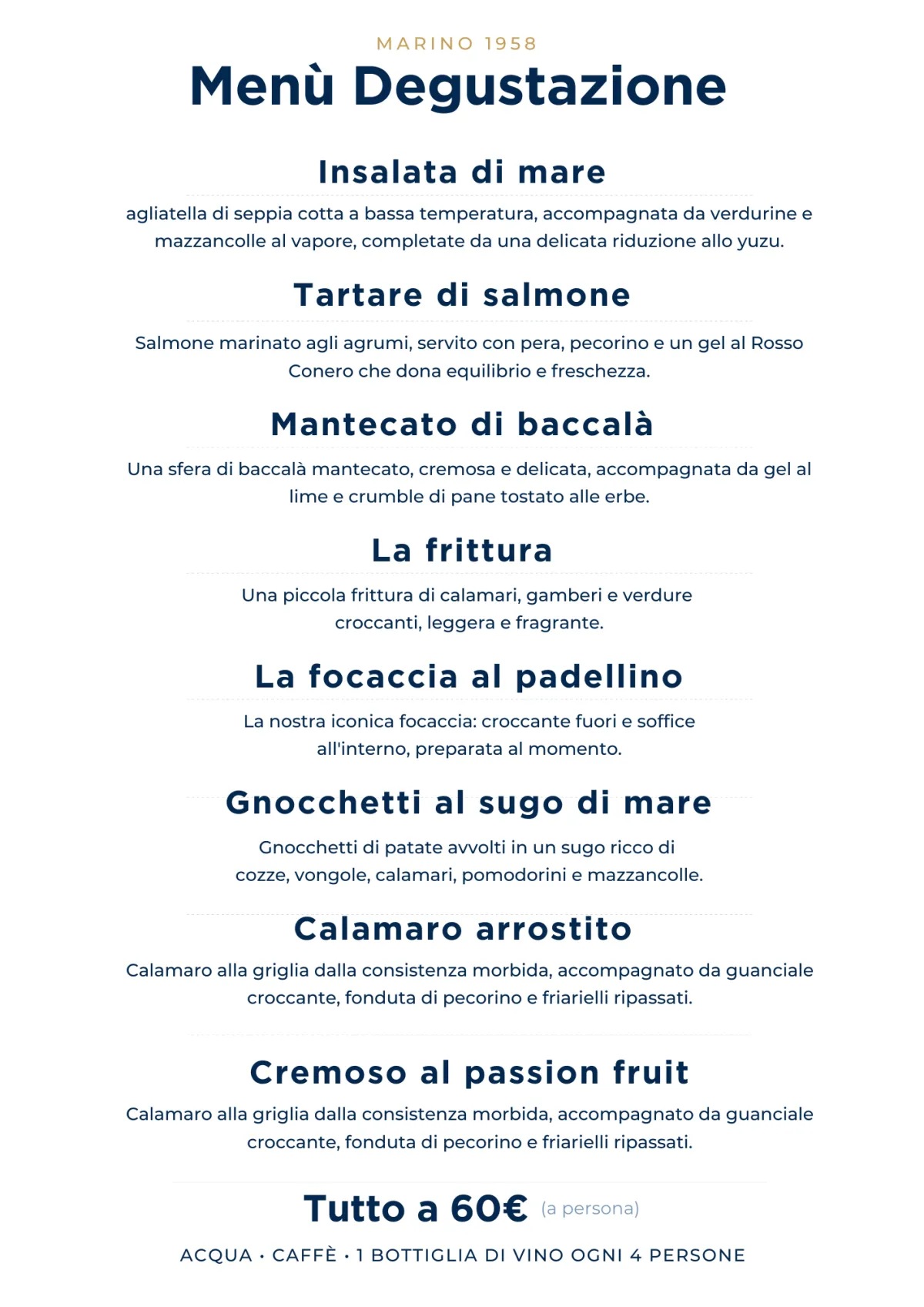 Un menù degustazione completo pensato per vivere un pranzo di Pasqua speciale sul mare.